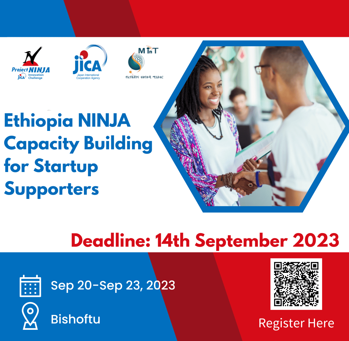 Ethiopia NINIA Capacity Building for Startup Supporters Exciting News! Japan International Corporation Agency (JICA) and the Ministry of Innovation and Technology are thrilled to announce an exclusive opportunity for all startup supporters in Ethiopia!Get ready to take your startup support skills to the next level with our highly anticipated Capacity Building Training Program! Designed with utmost care and collaboration from industry experts and renowned professionals, this program aims to equip accelerators, incubators, and incubation centers of universities with the essential knowledge and skills required for developing a thriving startup ecosystem. For more information please click here.Register here.Please note that the deadline for registration will be on September 14th sharp at 12:00AM and the call is only for startup supporters. Together, let's shape a brighter future for Ethiopian startups!