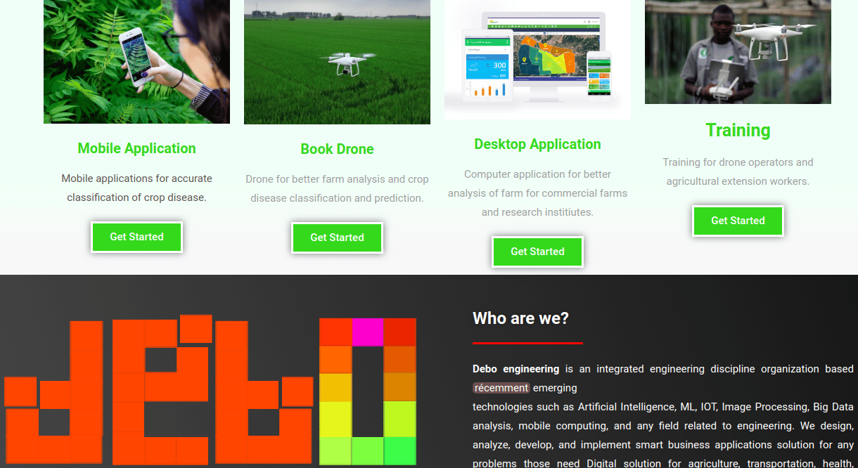 Debo Engineering, A Jimma based agritech startup, developed an algorithm that automatically detects and classifies plant disease through image detection. Debo engineering is a startup that design and develop smart business applications solution in the agriculture sector. The startup uses applied engineering discipline centered on newly evolving technologies such as artificial intelligence, ML, IOT, image processing, big data, and mobile computing.Debo developed an algorithm that automatically detects and classifies plant disease through image detection. The solution is available via a monthly subscription on the web and mobile application. It provides a recommendation to be taken for the user after detect plant disease. Bamlak, Shega Content Creator, writes more about Debo. Read the whole story here.