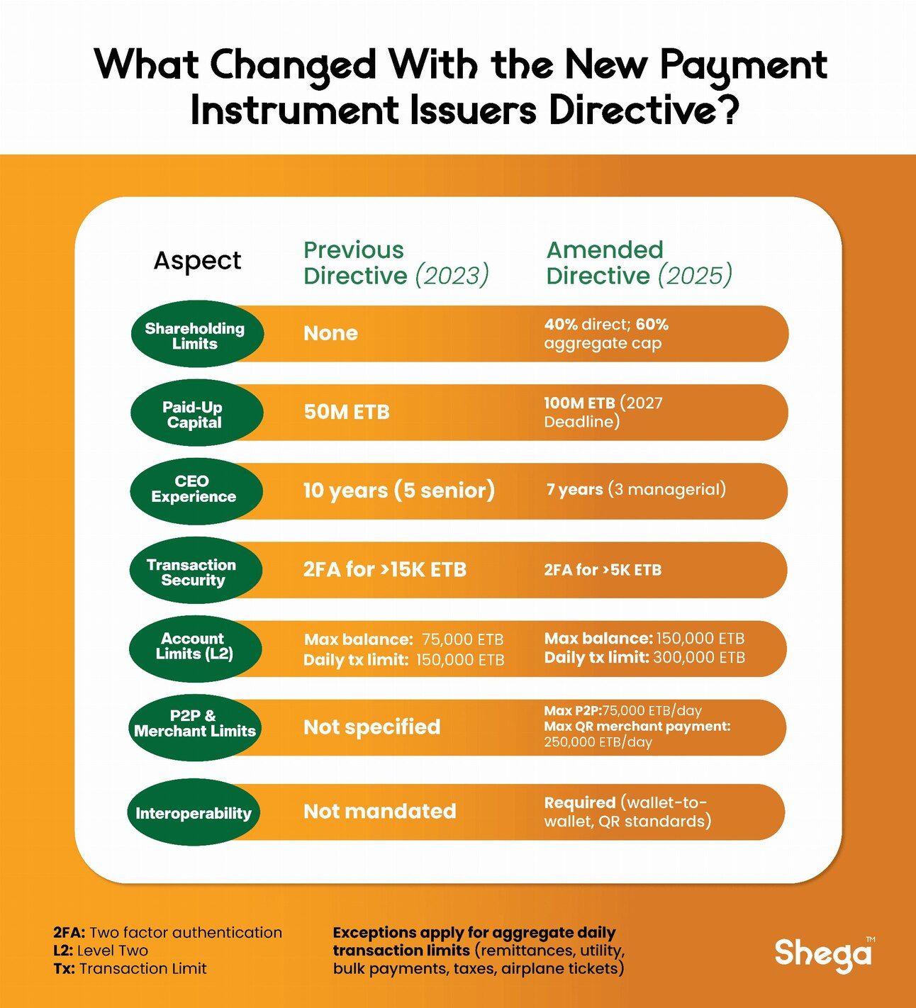 Biannual security audits will raise compliance costs, while higher transaction limits (daily caps up to 300,000 Birr) aim to spur adoption. Stakeholders might need to prioritize capital planning, system upgrades, and governance restructuring to comply with 2025–2027 deadlines.