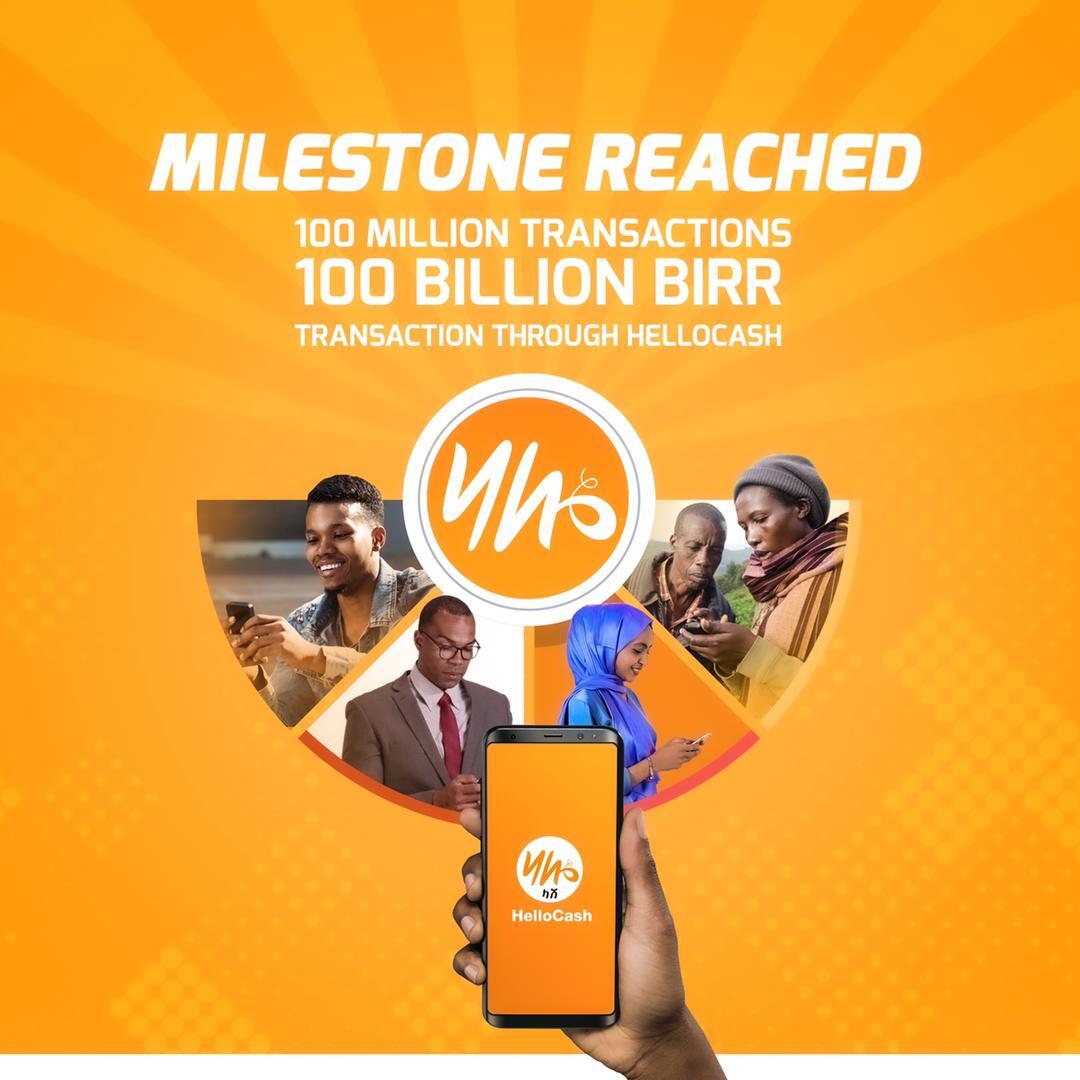 HelloCash has reached 100 Million in a number of transactions and processed ETB 100 Billion since it's launch. This is around USD 2,292,000,000 Billion worth of transactions using the exchange rate as of June 29, 2021.