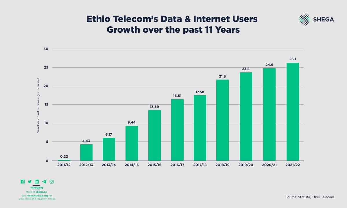 A peek into Ethio Telecom's data and internet reach over the past years.
